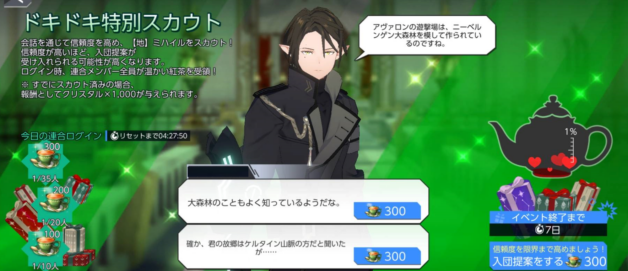 毎日アプリにアクセスして「ドキドキ特別スカウト」に参加してください!【地】ミハイルがロードの合流提案を待っています!
