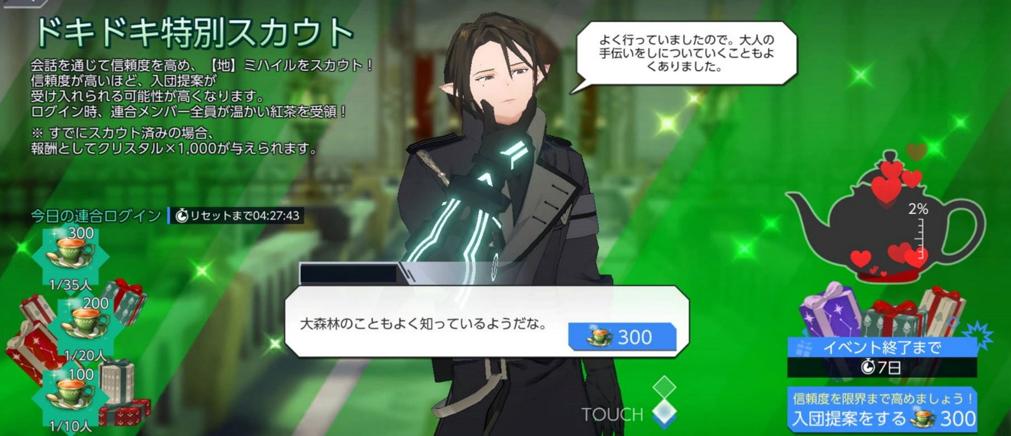 ※ 既に【地】ミハイルをスカウトした場合、代わりに報酬としてクリスタル1,000個を獲得できます。