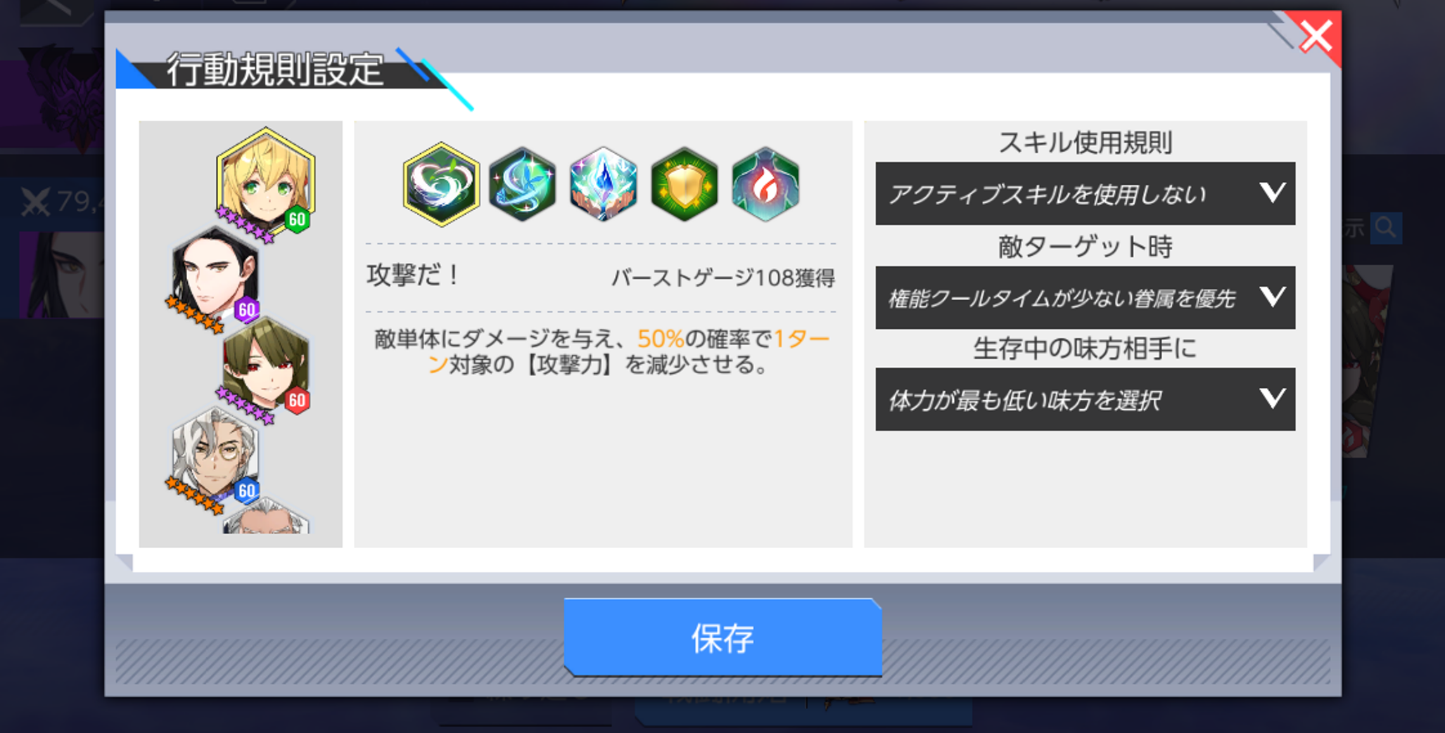 - 忘却の氷河レイドでは各英雄たちに行動規則を設定することができます。各英雄たちにどの対象にスキルを優先的に使用するか、スキル使用の順番などを決めてより戦略的なプレイを楽しみましょう。