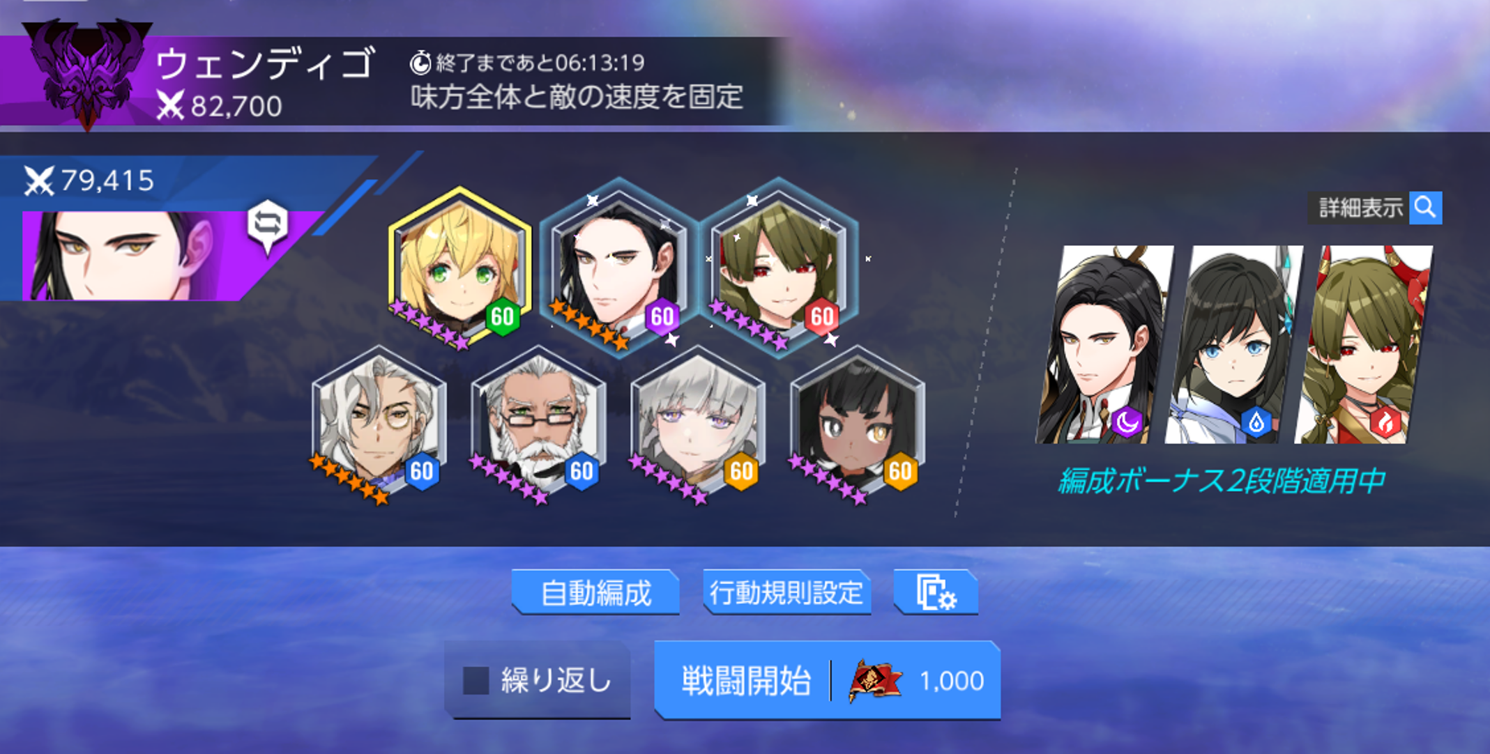 - 編成ボーナス英雄を編成して戦闘を行うと編成されたメンバーによって獲得可能な戦闘完了報酬が増加します。