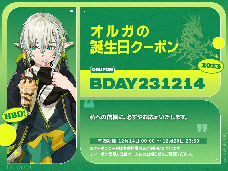 ❗誕生日クーポンは、12月14日00:00から使用可能です。忘れずにご使用ください。