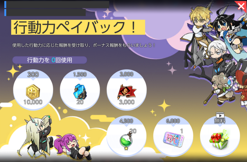 - 使用した行動力に応じた報酬を受け取り、ボーナス報酬ももらいましょう!