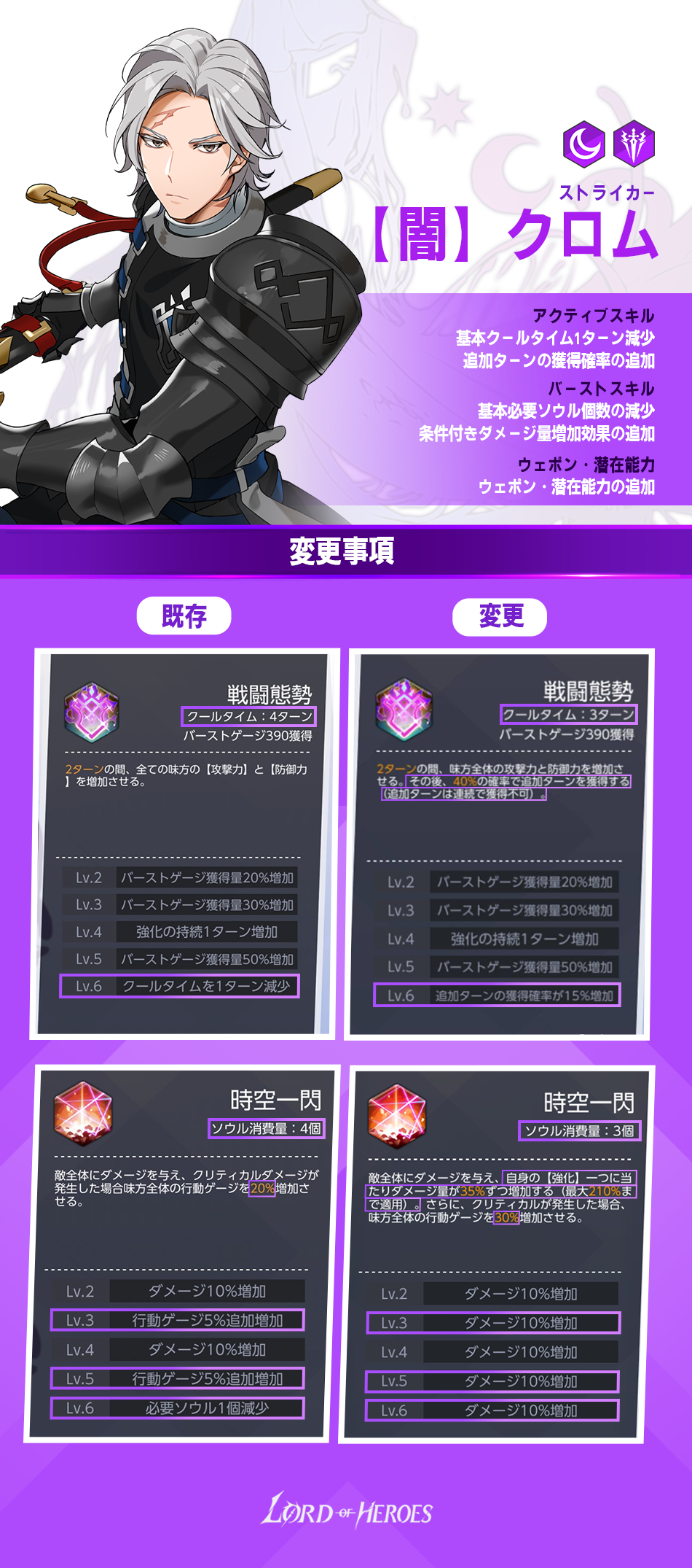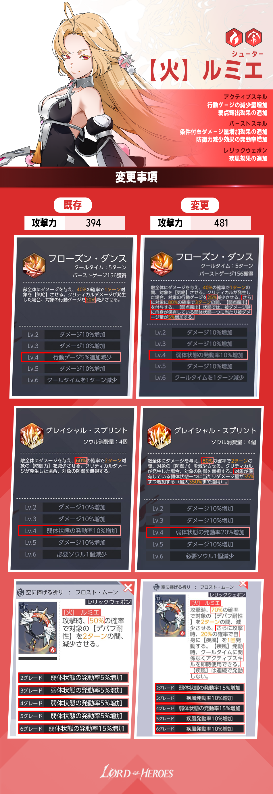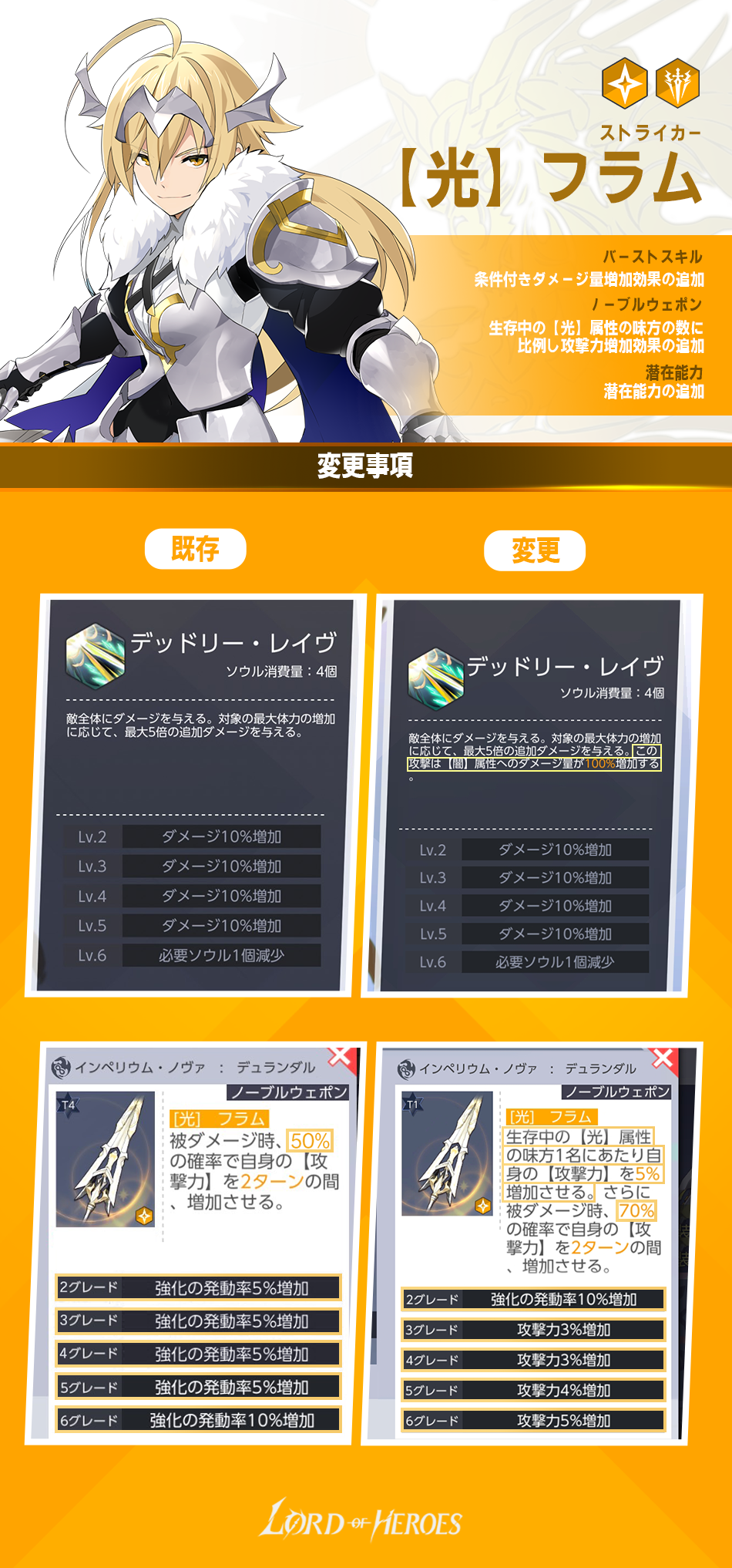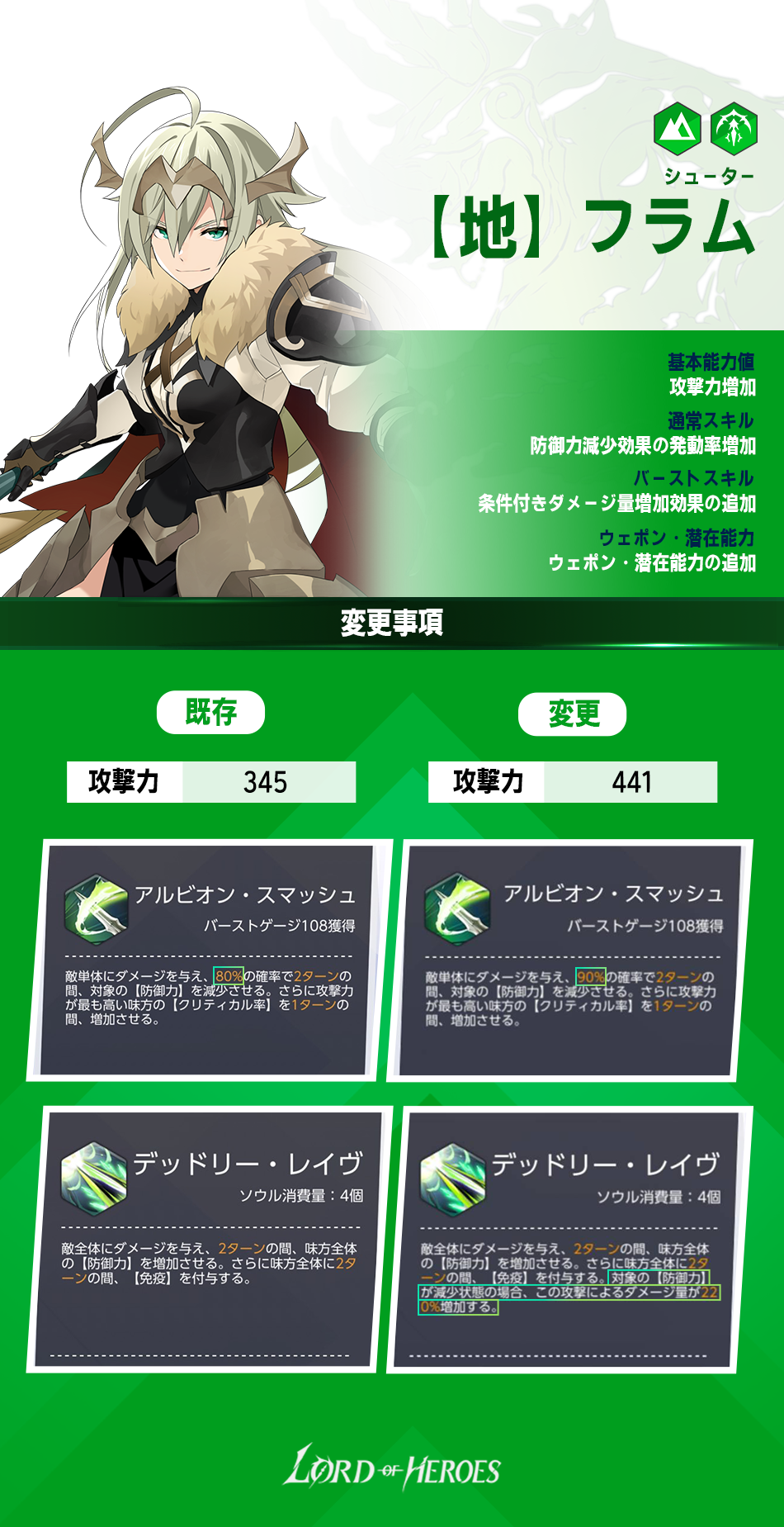 - 【地】フラム、【火】ルミエ、【光】フラム、【闇】クロムのバランス調整が行われます。