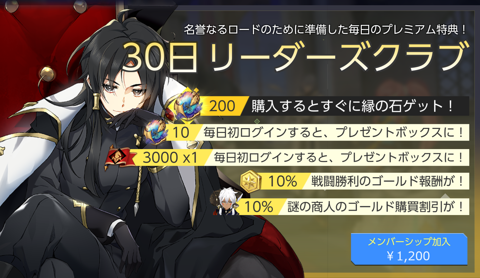 ※既存のリーダーズクラブをご利用中のロードが、リニューアルされたリーダーズクラブを購入された場合、ゴールドボーナス特典および謎の商人割引の特典が重複して適用されます。