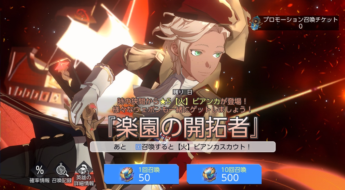 ※『楽園の開拓者』」喚で89回以上★5【火】ビアンカが登場しない場合、90回目の召喚で★5【火】ビアンカが100%の確率で召喚されます。