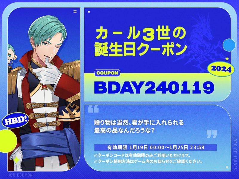 ❗誕生日クーポンは、1月19日00:00から使用可能です。忘れずにご使用ください。