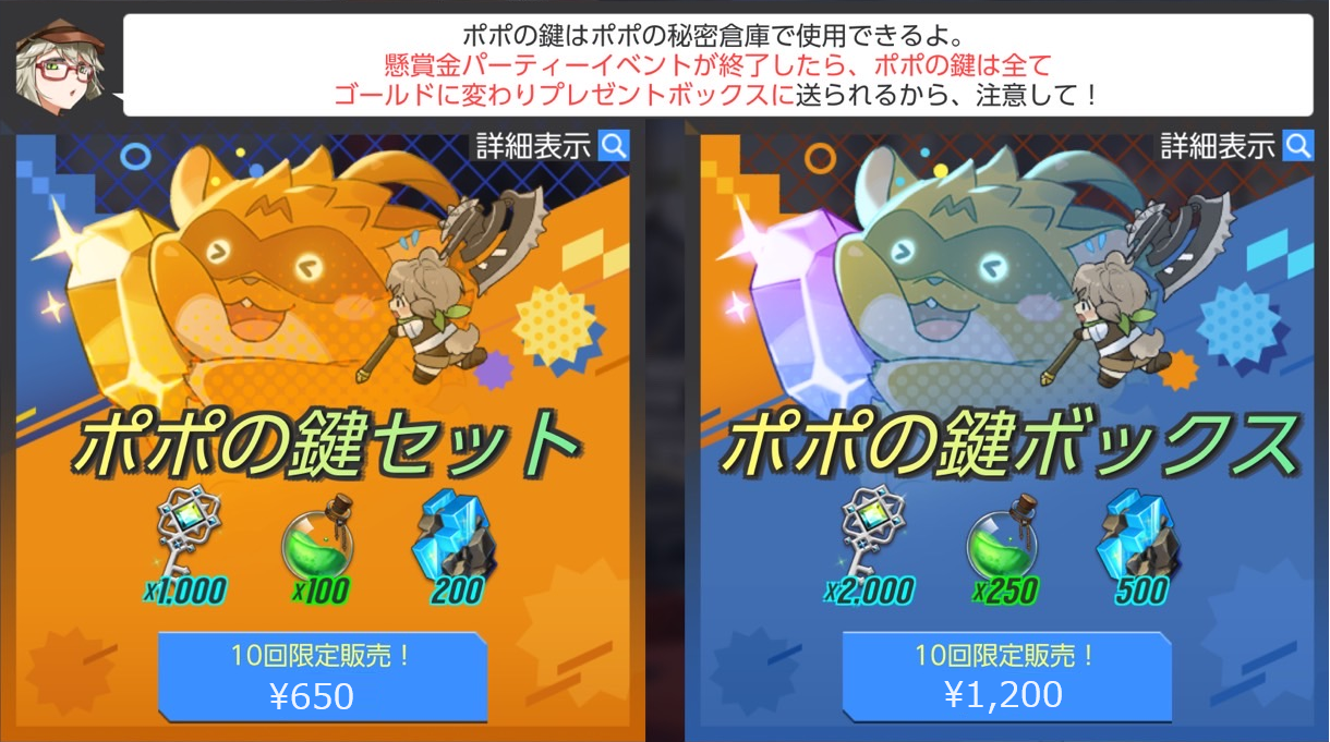 ※アニマパーティーが終了すると、「ポポの鍵」は全てゴールドに変わりプレゼントボックスに送られます。