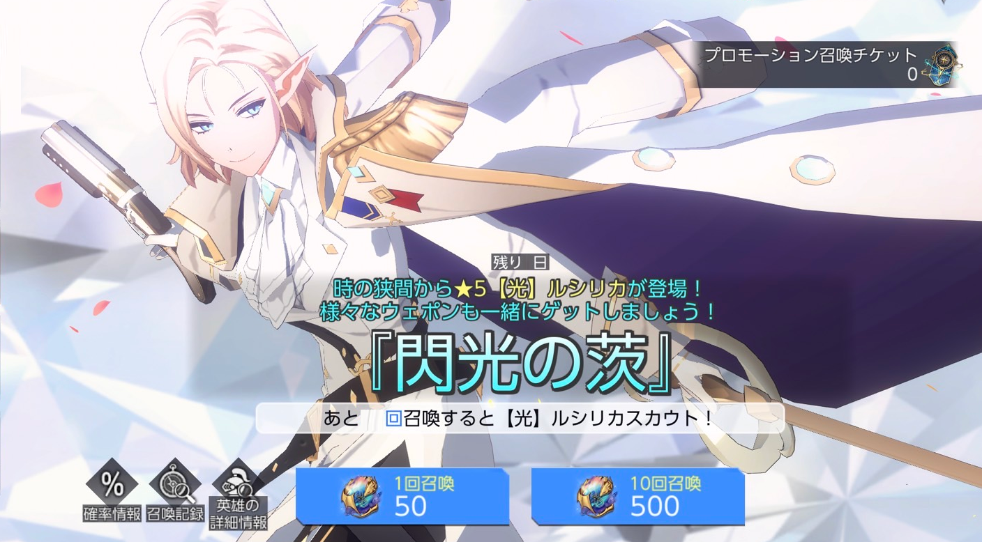 ※『閃光の茨』召喚で89回以上★5【光】ルシリカが登場しない場合、90回目の召喚で★5【光】ルシリカが100%の確率で召喚されます。