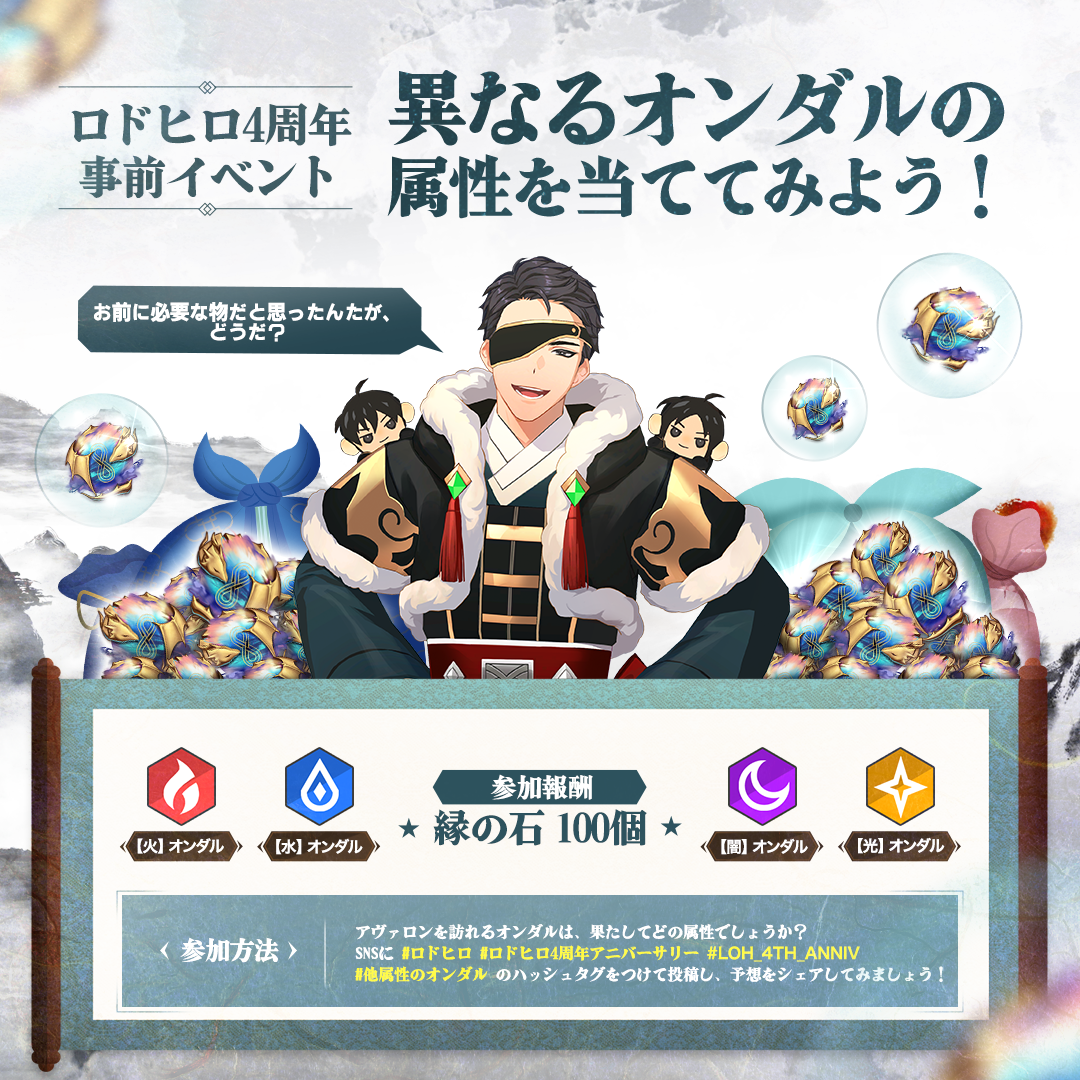 ロードオブヒーローズの4周年を迎え、異なる属性のオンダルがロードを訪れる予定です。