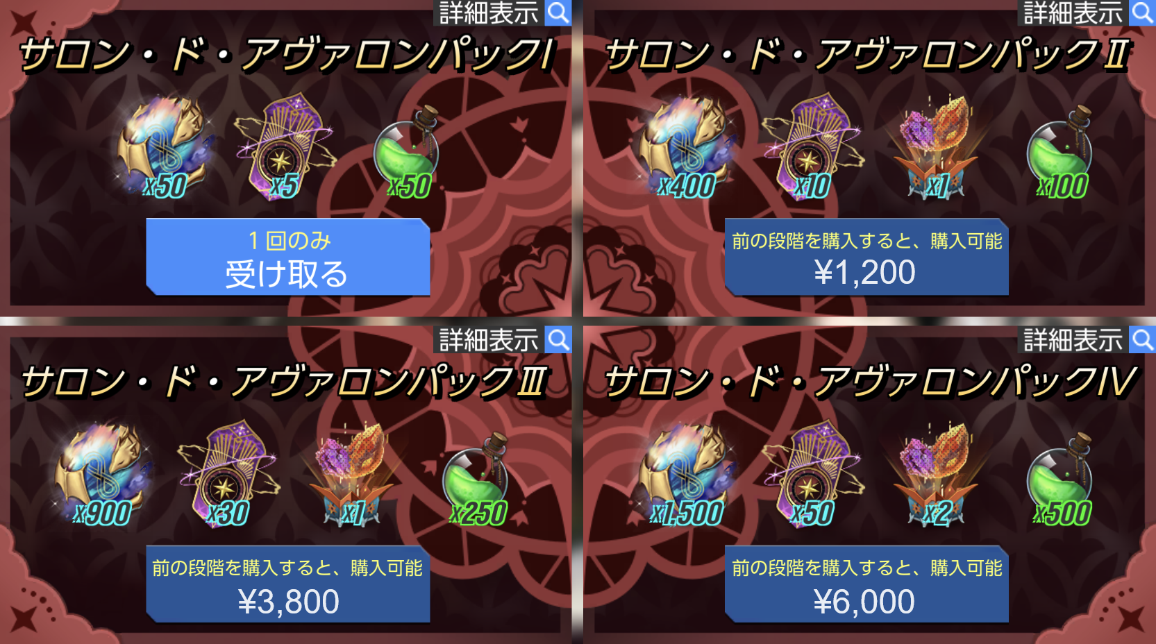 ※ 各段階ごとに、1アカウントにつき1回のみ購入できます。