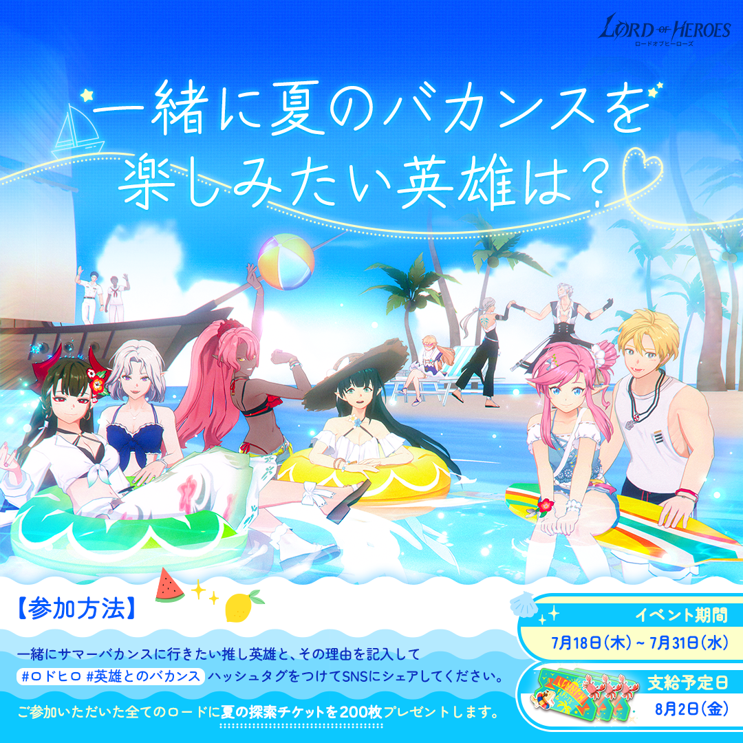 ロードと一緒にサマーバカンスを楽しむ英雄は誰でしょうか!