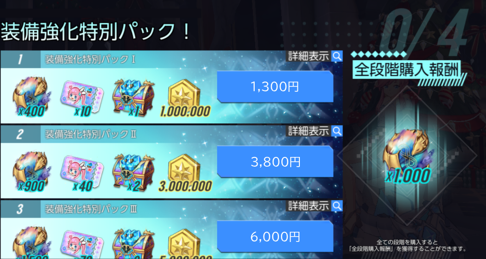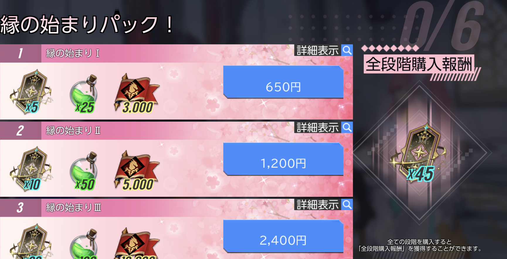 ※段階別パックをすべて購入した場合、「縁の石1,000個」を獲得することができます。