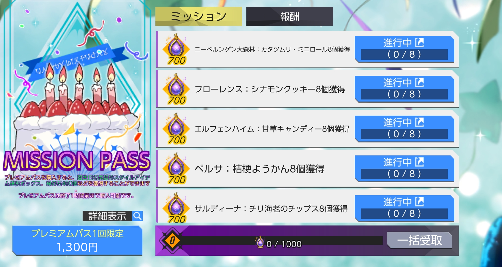 - 商品内容:1月誕生日イベントミッションパスのミッションを達成し、様々な報酬を獲得できます!
