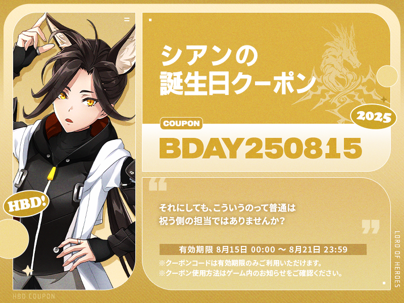 シアンの誕生日を迎え、バースデークーポンを用意しました。