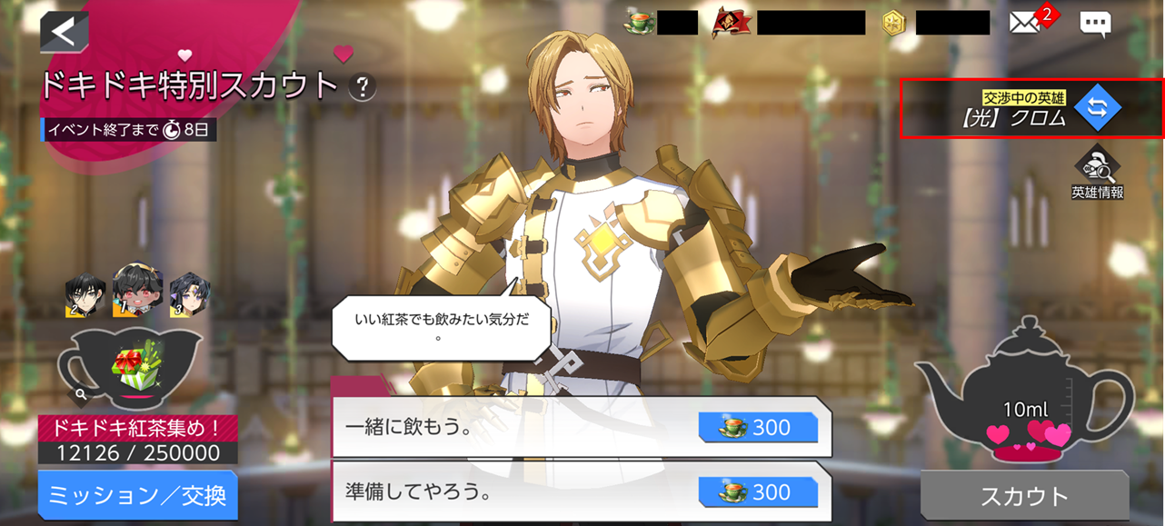- ログインとミッションを通じて「温かい紅茶」を集め、さまざまな英雄をスカウトしてみましょう!