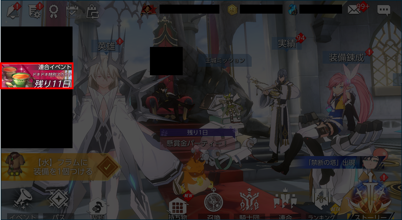 - 入場方法:王城ロビー左バナー → 「ドキドキ特別スカウト」をタップすると、プレイすることができます。