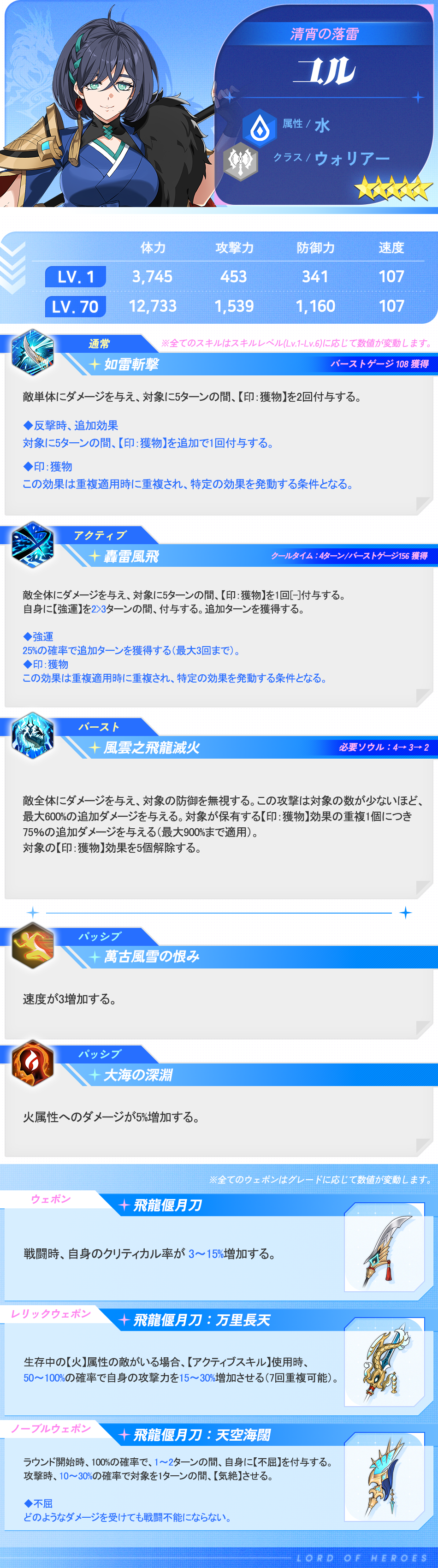 ※ レベル70達成時の能力値が、覚醒後の数値で記載されていたため、覚醒前の数値に修正いたしました。