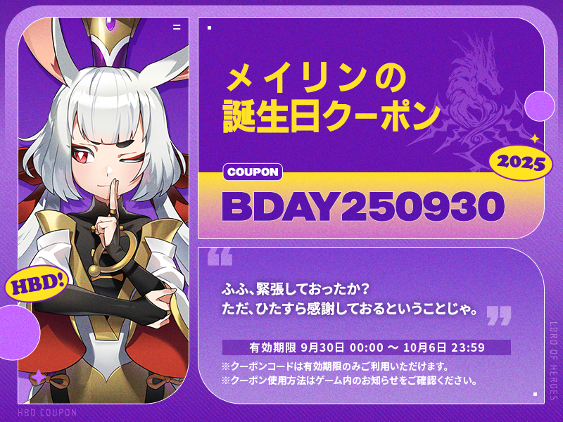 メイリンの誕生日を迎え、バースデークーポンを用意しました。