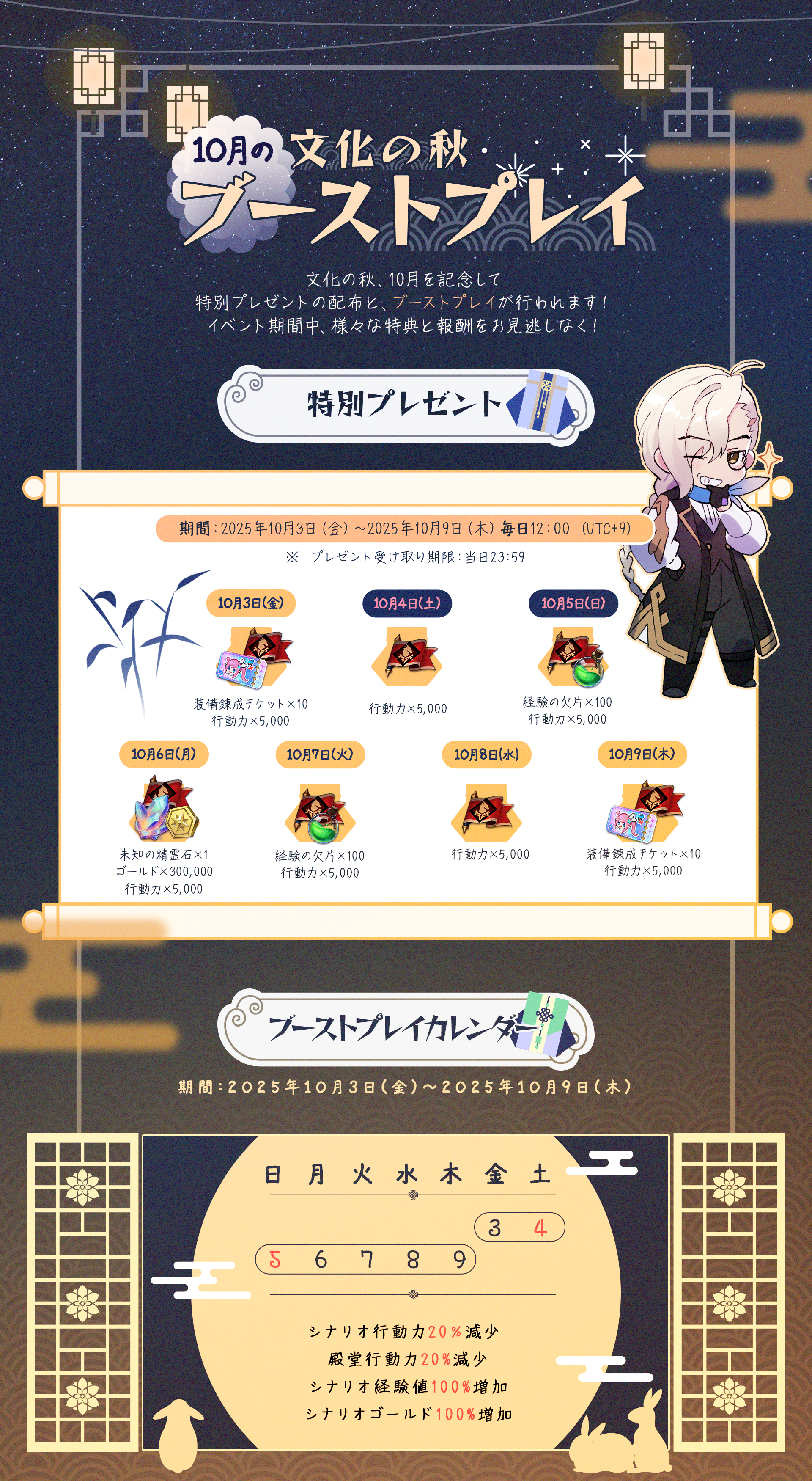 イベント 【イベント】文化の秋、10月 特別なプレゼント&ブーストプレイイベント! 「ロードオブヒーローズ」運営チーム Read more posts by this author. 「ロードオブヒーローズ」運営チーム 2025年 10月 2日 木曜日
