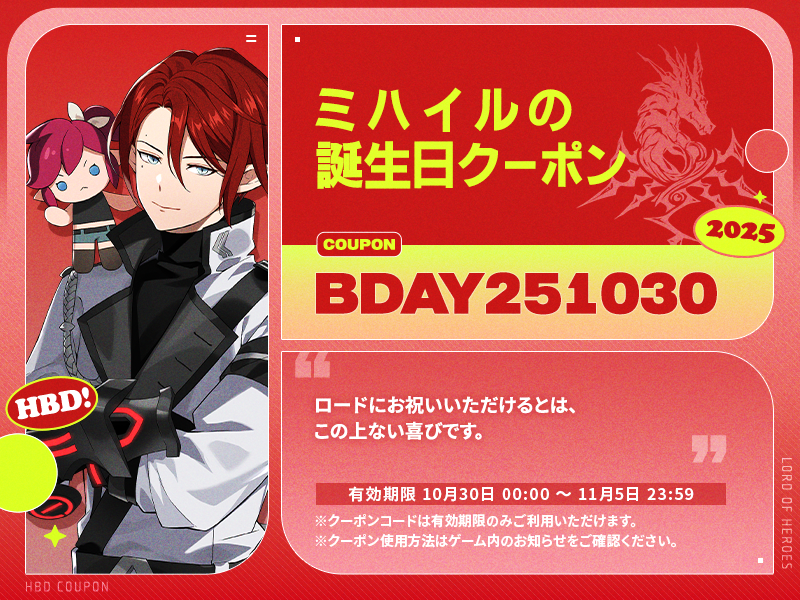 ミハイルの誕生日を迎え、バースデークーポンを用意しました。