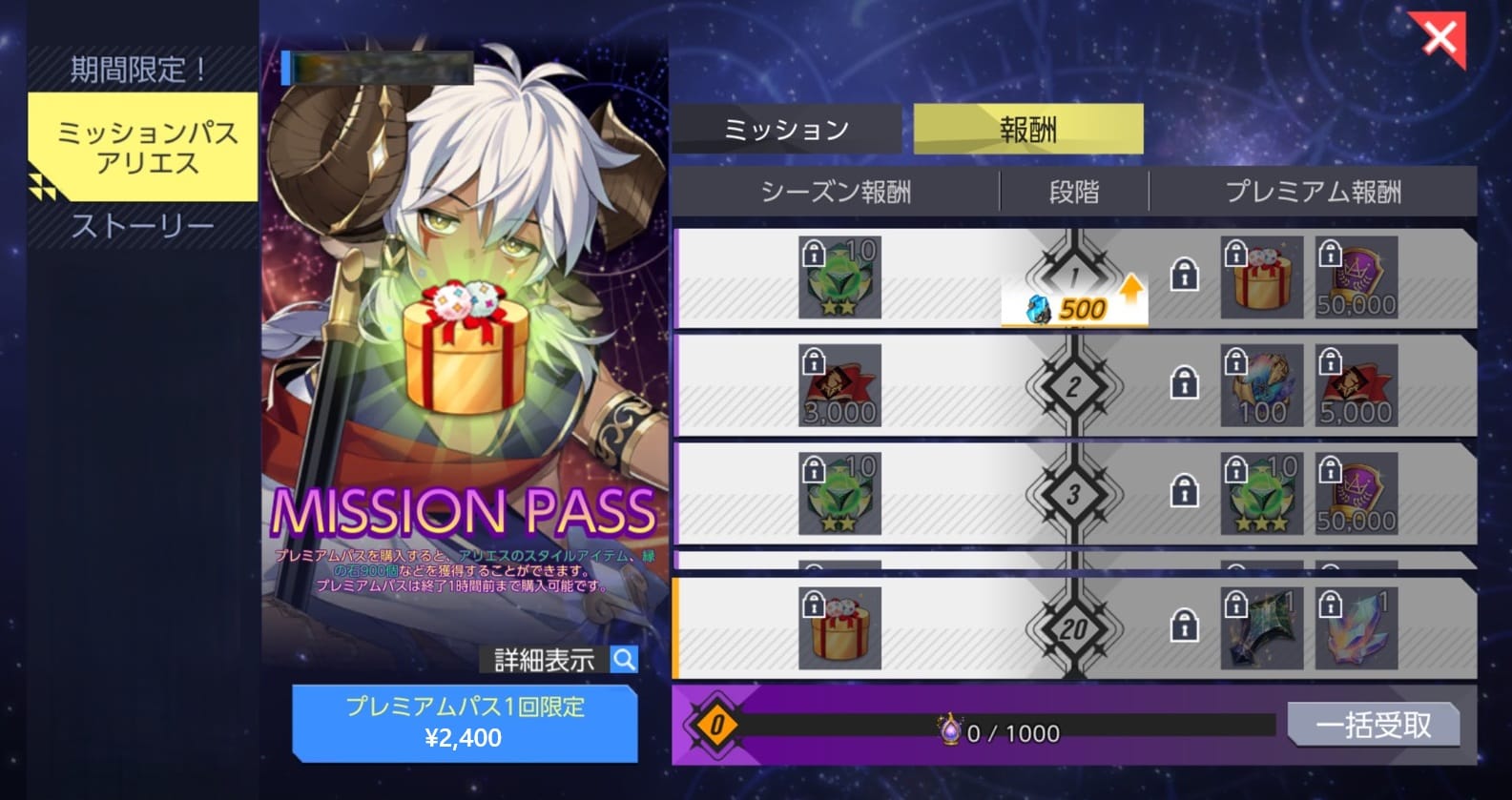 ※プレミアムパスはミッションパスの終了の1時間前まで購入できます。