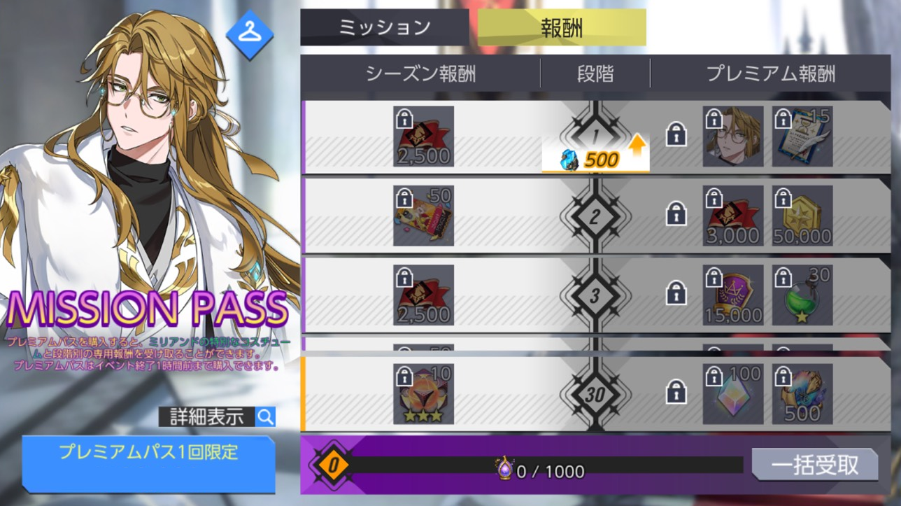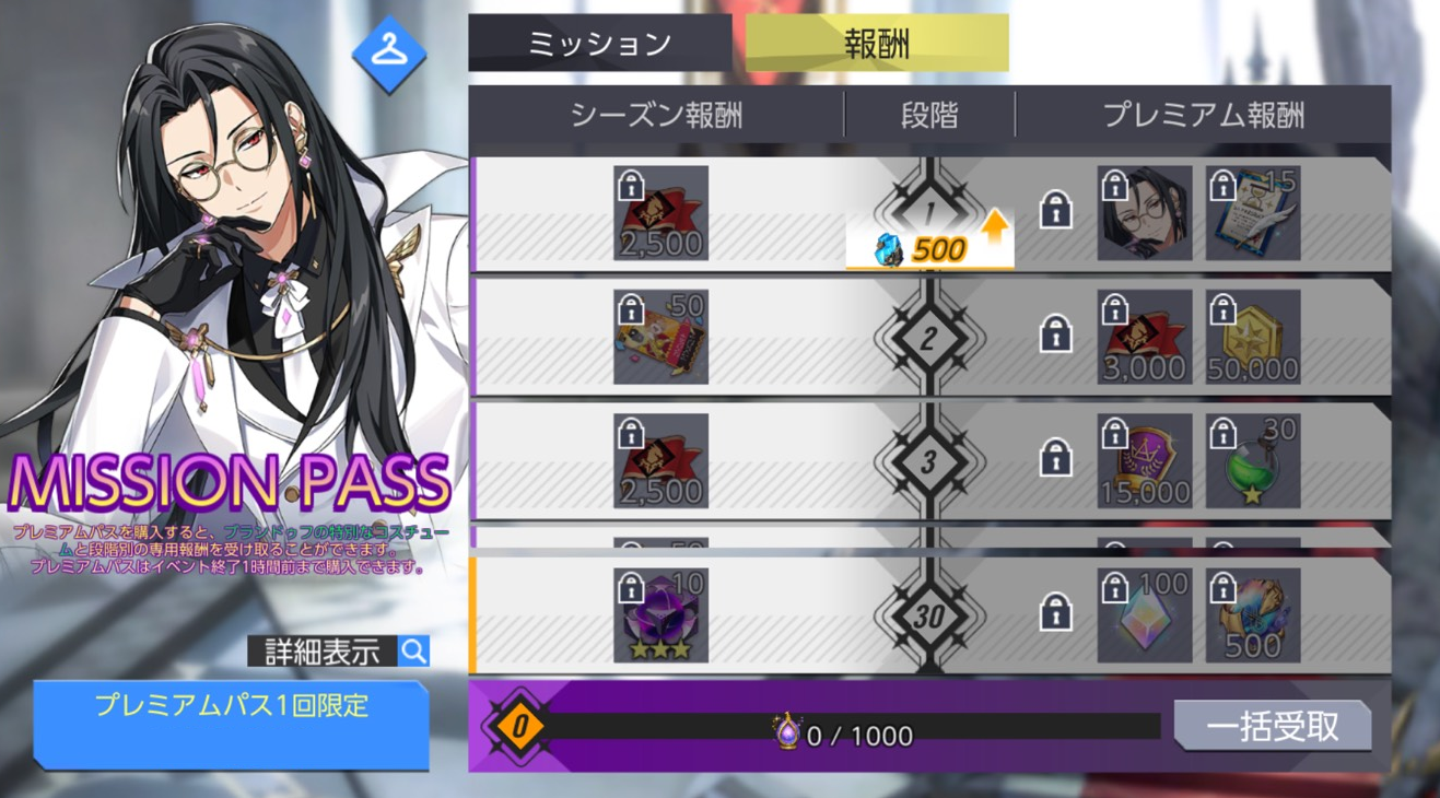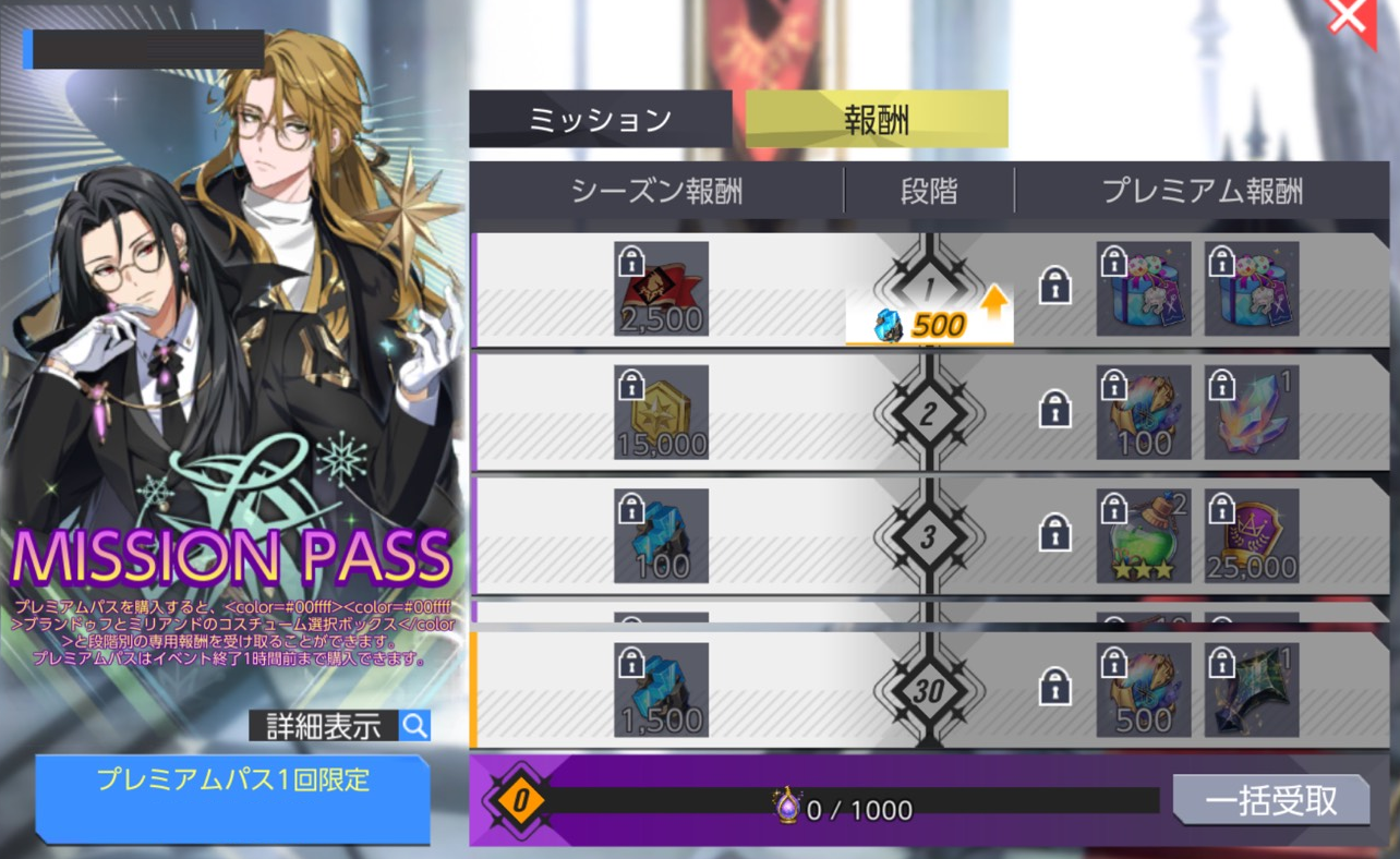 ※プレミアムパスはミッションパスの終了の1時間前まで購入できます。