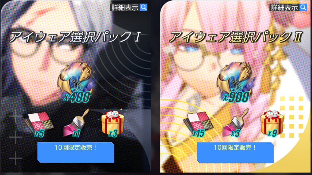 ※アイウェア選択ボックからは眼鏡スタイルアイテムを選択して獲得することができます。