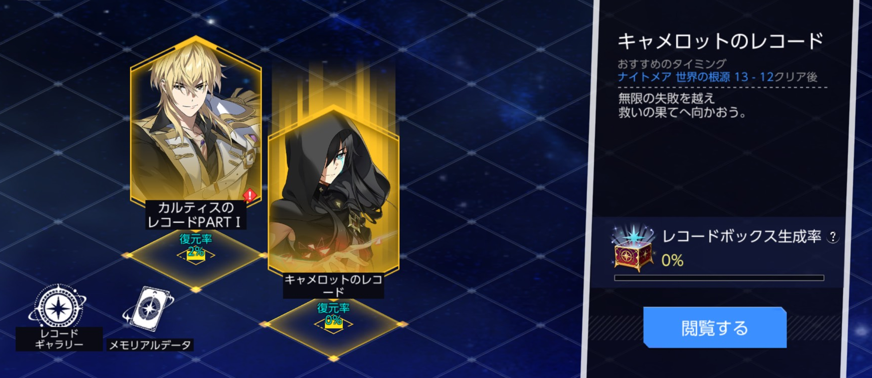 - 【レコード】コンテンツ内のステージをクリアすると、【メモリアルパーツ】を獲得できます。