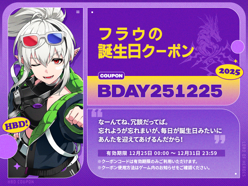 ❗誕生日クーポンは、12月25日00:00から使用可能です。忘れずにご使用ください。