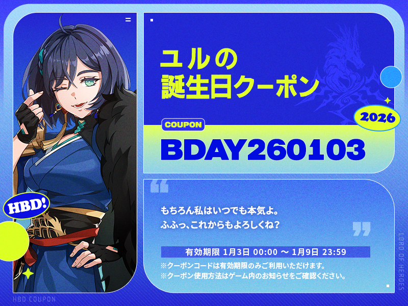 ❗誕生日クーポンは、1月3日00:00から使用可能です。忘れずにご使用ください。