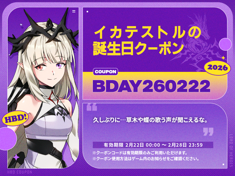 ❗誕生日クーポンは、2月22日00:00から使用可能です。忘れずにご使用ください。