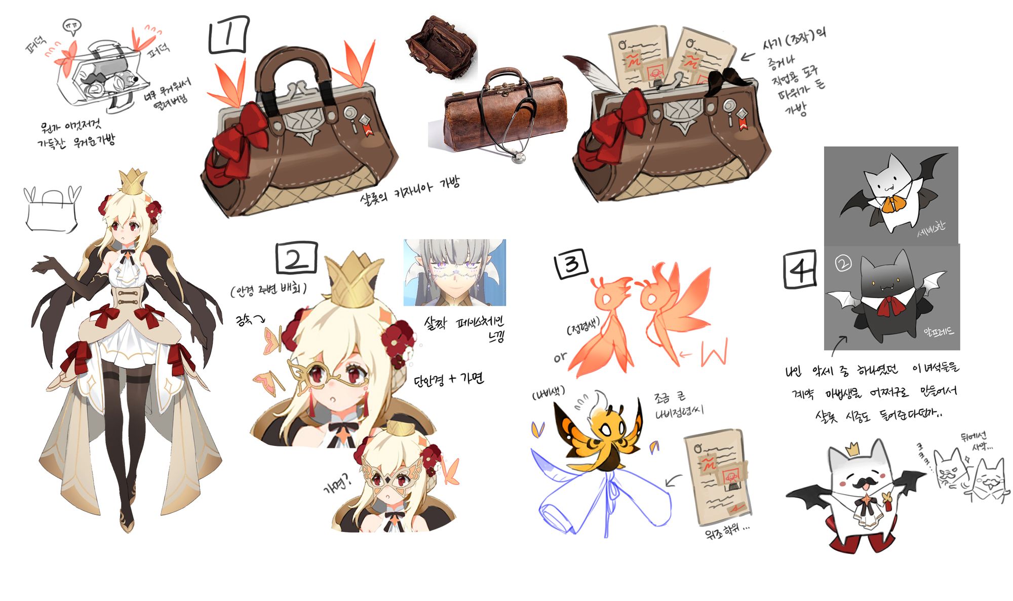 そして、【火】シャーロットの専用スタイルアイテムの製作にあたり、様々な意見がありました。皆様にも、ぜひご覧いただきたく、この機会に公開いたします。(例のイメージの中で、キャラクター性と開発の難易度を考慮し、2番が最終的に選ばれました)
