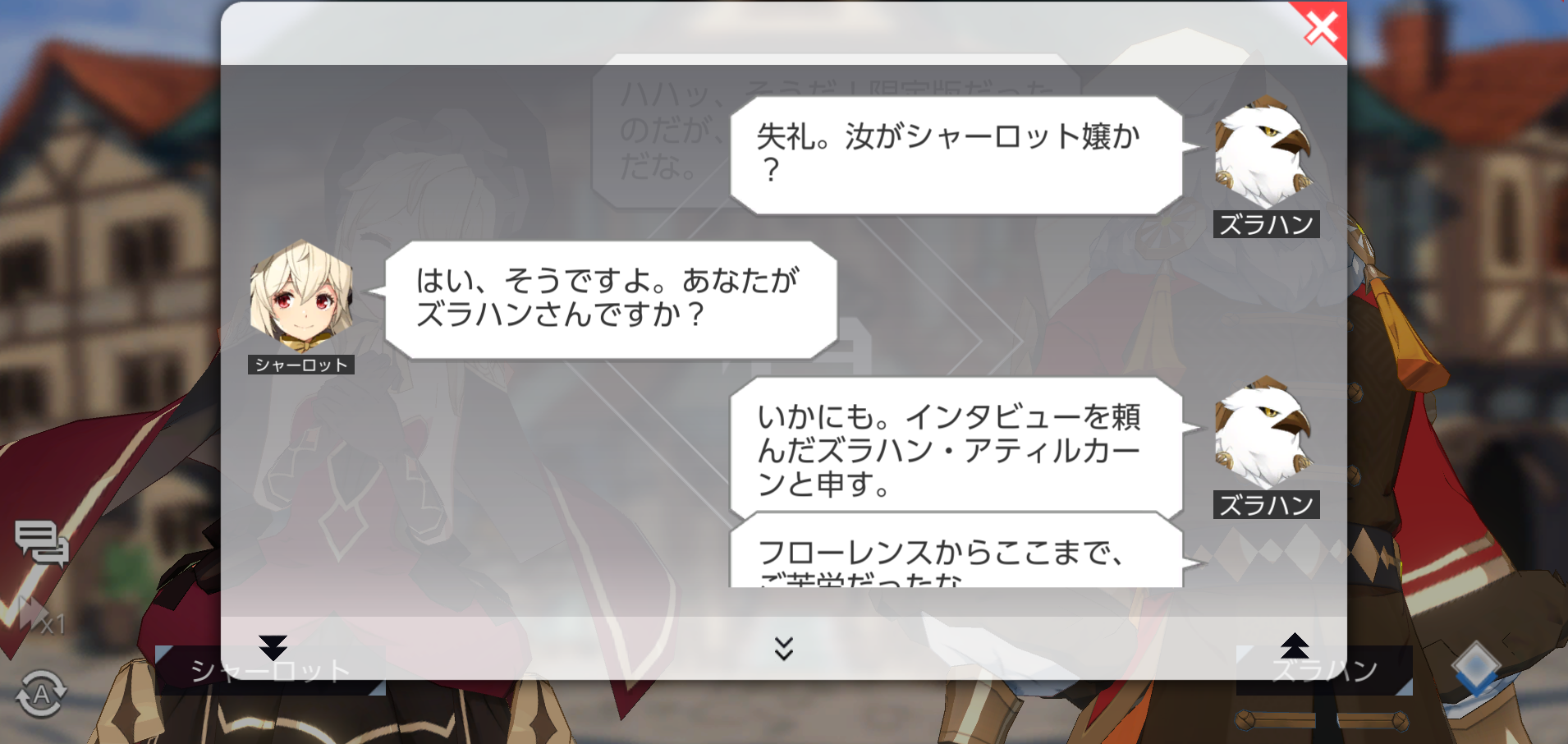 従来の会話シーンでは、吹き出しをタップして進める方式でしたが、会話の流れに合わせて自動的にストーリーが進むように設定できる機能が実装される予定です。また、過ぎた会話の内容を簡単に読み返すことができる、「会話記録」もアップデートされる予定です。